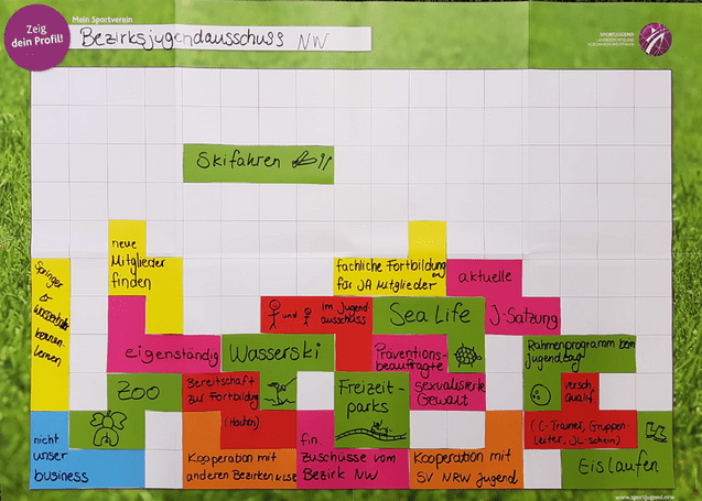 "Zeig dein Profil" ist eine Methode, um die Kinder- und Jugendarbeit in eurem Verein zu analysieren, euer individuelles Vereinsprofil sichtbar zu machen und euch eurer Einzigartigkeit bewusst zu werden. Gemeinsam mit vielen verschiedenen Vertreter*innen aus eurem Verein schaut ihr euch folgende Bereiche in eurem Verein an: