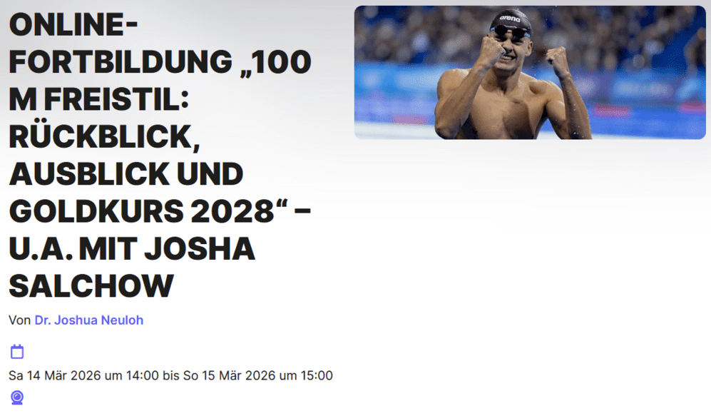 Infos & Anmeldung: https://www.billetweb.fr/online-fortbildung-100-m-freistil-ruckblick-ausblick-und-goldkurs-2028-u-a-mit-josha-salchow