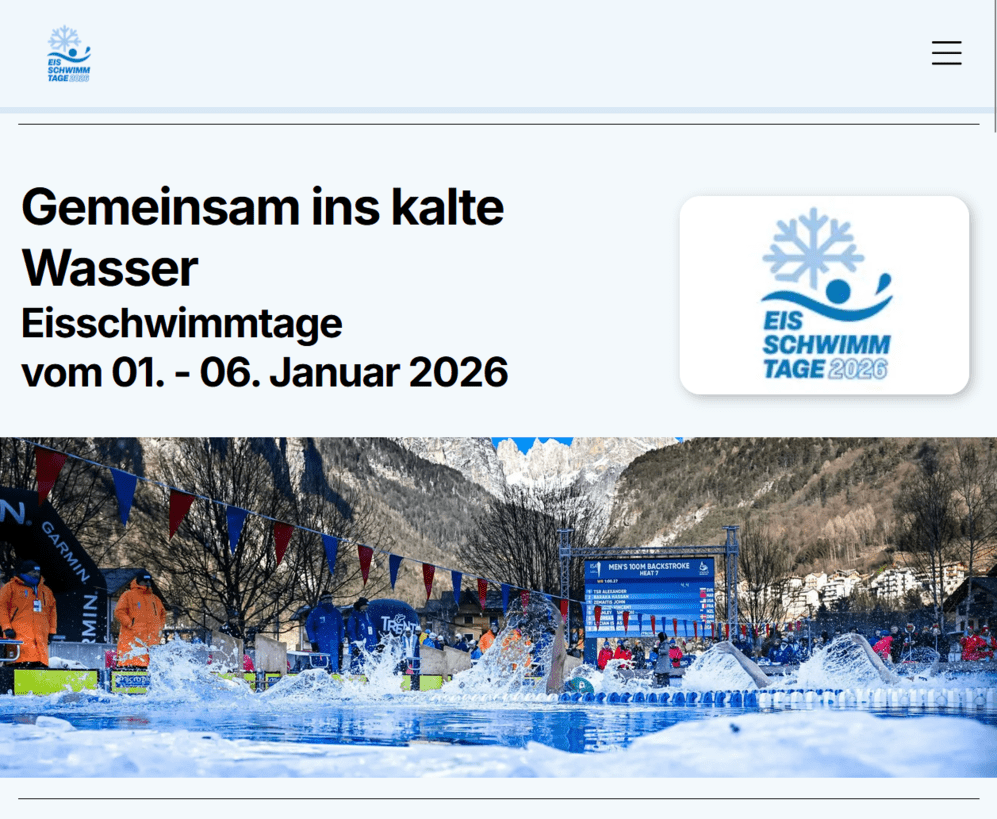 Deutschland steigt ins kalte Wasser: Vom 01. bis 06. Januar 2026 lädt der Deutsche Schwimm-Verband e.V. (DSV) erstmals zu den bundesweiten Eisschwimmtagen ein. Vereine im ganzen Land öffnen dafür ihre Tore und Gewässer – und ermöglichen allen Interessierten, das Eisschwimmen in einem sicheren Rahmen kennenzulernen