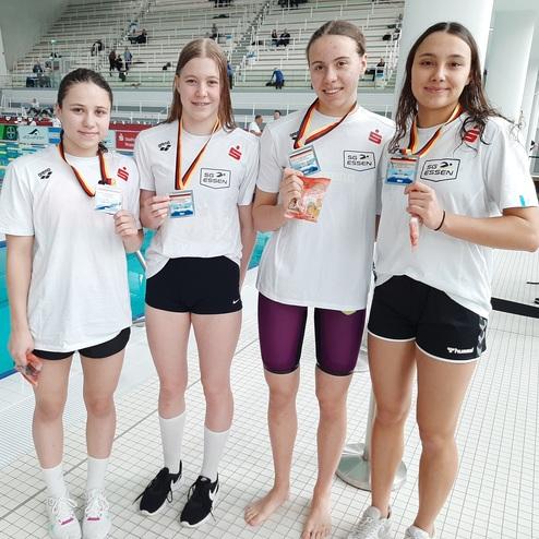 In den Nachwuchs-(JEM/EYOF) konnten die Sportler*innen des SV NRW ebenfalls überzeugen, was sich in der Anzahl der gewonnenen Medaillen (18) niederschlägt. Mit viermal Gold war Jarno Bäschnitt (SG Ruhr) erfolgreichster Sportler unseres Landesverbandes. Er siegte jeweils über 100m und 200m Schmetterling, sowie über 200m und 800m Freistil. Ebenfalls Gold gewann über 50m Freistil Julianna Dora Bocska (SG Essen). Außerhalb der Medaillenwertungen sorgte Larus Thiel (SG Bayer) für zwei Paukenschläge. Über 50m Freistil stellte der im Jahr 2009 Geborene mit 00:23,81 Minuten und über 100m Freistil mit 00:52,14 zwei neue Deutsche Jahrgangsrekorde auf.