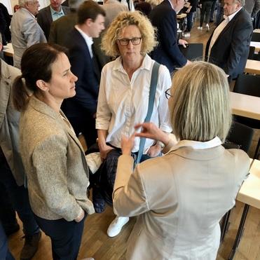 Als Vertreterin der Stadt Mönchengladbach wandte sich die Erste Bürgermeisterin Josephine Gauselmann an die anwesenden Teilnehmer*innen. Sie verwies auf die sportlichen Erfolge der Stadt Mönchengladbach, auch im Schwimmsport, und unterstrich, wie wichtig das Ehrenamt und die Gemeinschaft in den Sportvereinen sind. Die Erste Bürgermeisterin sicherte den Sportvereinen der Stadt Unterstützung zu und möchte auch langfristig den Schwimmsport weiter voranbringen. Stefan Klett, der Präsident des Landessportbundes Nordrhein-Westfalen, richtete seine Grußworte per Videobotschaft aus. Er beglückwünschte den Schwimmverband NRW zum 75jährigen Bestehen und drückte ebenfalls seine Freude darüber aus, dass die Menschen trotz der vergangenen und aktuellen gesellschaftlichen Herausforderungen wieder den Weg zurück in die Vereine finden. Sein Anspruch: Jedes Kind soll am Ende der Grundschulzeit sicher schwimmen können!