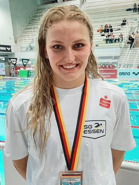 100 Punkte stehen für die Drittplatzierte Lisa Höpink (bis Herbst 2022 SG Essen) zu Buche. Inzwischen schwimmt die Zweite unserer Rangliste der Jahre 2015, 2016 und 2019 für die Sport Union-Neckarsulm. Die für unsere Wertung herangezogenen Wettkämpfe bestritt sie aber sämtlich für die SG Essen. Auf der Langbahn wurde sie SV NRW-Meisterin über 100m Schmetterling. Vizemeisterin wurde sie über 100m Freistil und 50m Schmetterling. Bei den Deutschen Meisterschaften auf der Langbahn gewann sie über 50m und 100m Schmetterling die Silbermedaille, sowie über 100m Freistil die Bronzemedaille.