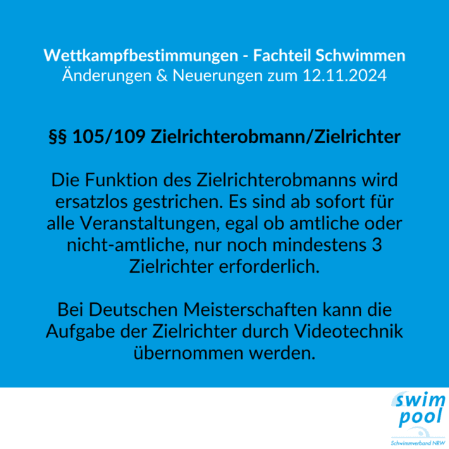 Klickt einfach auf das Bild und ladet euch die wichtigsten Änderungen der Wettkampfbestimmungen des Fachteils Schwimmen herunter. Ihr findet alle Änderungen, die seit dem 28.03.2025 in Kraft getreten sind.