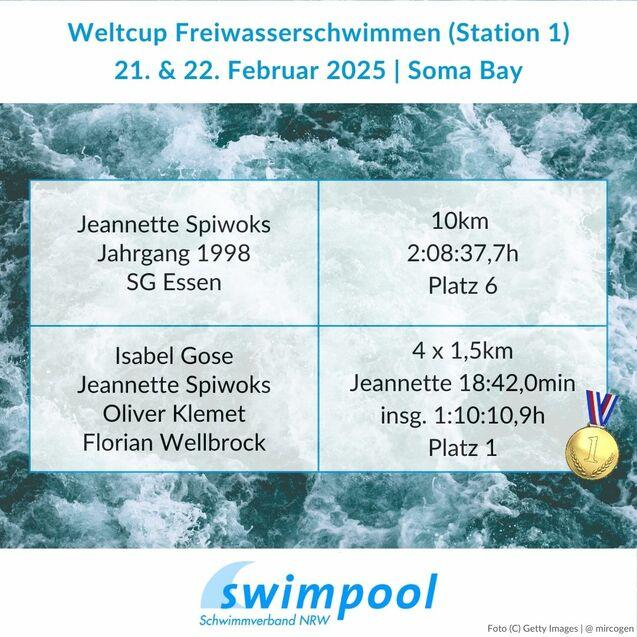 Das war ja mal ein Weltcup für die Schwimmerin der SG Essen: Jeannette Spiwoks! Im ägyptischen Soma Bay sicherte sich Jeannette den 6. Platz in der Gesamtwertung über die 10km Freiwasser - und damit direkt das Ticket für die Weltmeisterschaften.