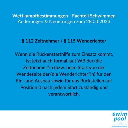 Rückenstarthilfe: Zeitnehmer*innen bzw. Wenderichter*innen sind für den Ein- und Ausbau, sowie das Rückstellen auf Position 0 nach jedem Start zuständig und verantwortlich.