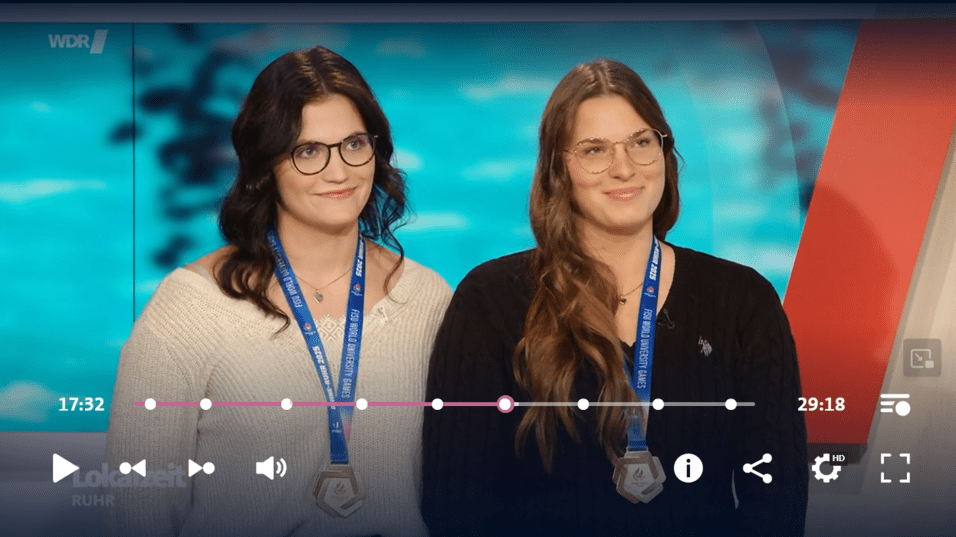 Am 30. Dezember 2025 waren die Wasserballerinnen Jana Stüwe und Darja Heinbichner zu Gast in der WDR Lokalzeit Ruhr. Die Spielerinnen vom Schwimmverein Blau-Weiß Bochum 1896 e.V. sprachen über ihren Turniererfolg bei den World University Games (universiade) 2025 gemeinsam mit der deutschen Nationalmannschaft.