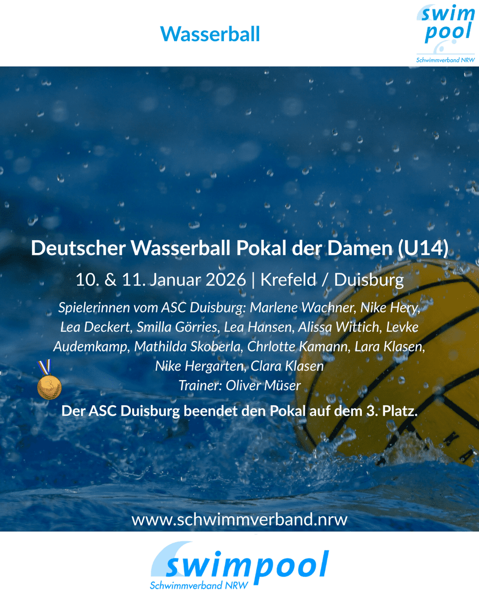 Am 10. und 11. Januar 2026 fand in Krefeld und Duisburg das Finale vom Deutschen Wasserball Pokal der U14-Damen statt. Das Team des ASC Duisburg gewann die Bronzemedaille.