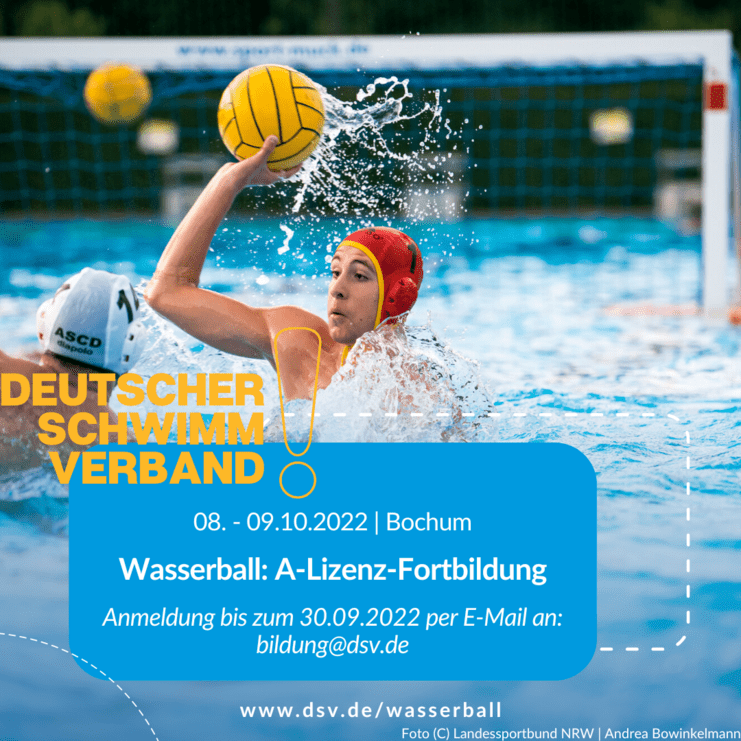 Der Deutsche Schwimm-Verband führt vom 08. - 09.10.2022 eine Fortbildung für A-Lizenz-Trainer*innen im Wasserball durch. Alle wichtigen Informationen sind der Ausschreibung zu entnehmen.