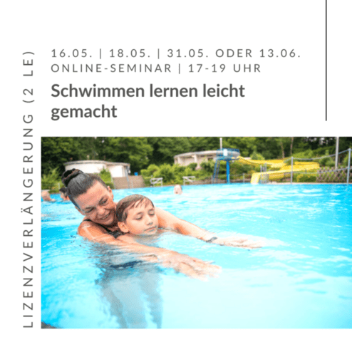 - 13.06.2022 | 17:00-19:00 Uhr | Online-Seminar (2 LE): Schwimmen lernen leicht gemacht