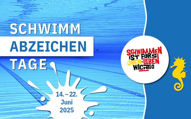 Vom 14. bis zum 22. Juni 2025 finden wieder die Schwimmabzeichentage in ganz Deutschland statt. Ziel ist es, dass in diesem Zeitraum möglichst viele Schwimmabzeichen abgenommen werden - vom Seestern bis zum Goldabzeichen!