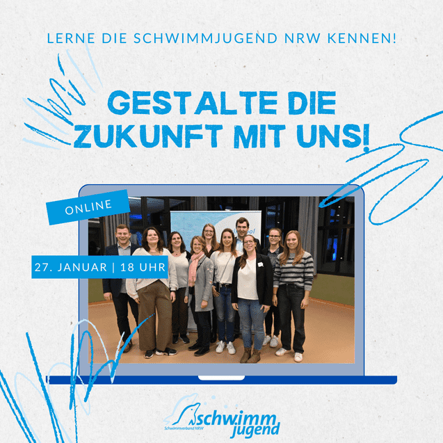 Lerne die Schwimmjugend NRW digital und unverbindlich am 27. Januar 2025 um 18 Uhr kennen!