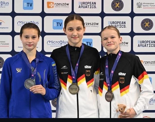 Nina Berger aus dem Jhg. 2009 belohnte sich im Finale vom 3m-Brett mit 353,85 Punkten mit der Goldmedaille und somit mit dem Europameistertitel der Junior*innen. Die Springerin verpasste im Finale vom 1m Brett mit 312,75 Punkten nur knapp die Bronzemedaille.