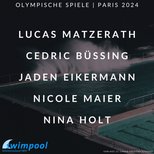 Insgesamt wurden vier Sportler*innen aus dem Schwimmverband NRW für die Olympischen Spielen nominiert: Cedric Büssing, Jaden Eikermann, Nicole Maier und Nina Holt. Zusätzlich drücken wir noch Lucas Matzerath die Daumen, der für die SG Frankfurt schwimmt, seinen Trainingsmittelpunkt aber in Bochum hat: