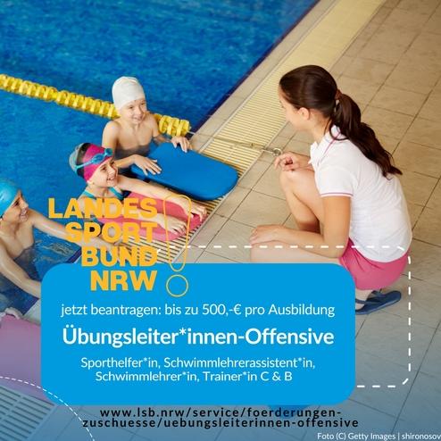 Schnell sein, lohnt sich, denn viele Teilnehmer*innen haben schon die Möglichkeit genutzt, ihre Aus- oder Fortbildung mit Hilfe der Übungsleiter*innen-Offensive zu fördern. Der Schwimmverband NRW bietet dieses Jahr noch zwei Ausbildungen an, für die ihr die Förderung noch beantragen könnt: