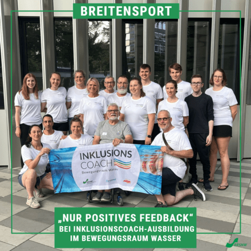 Erstmalig haben 16 Teilnehmende die Zertifikats-Ausbildung zum Inklusionscoach erfolgreich beendet. An der Deutschen Sporthochschule in Köln wurden nicht nur Barrieren in den Köpfen überwunden, sondern in verschiedenen Einheiten gemeinsam daran gearbeitet, wie Menschen mit und ohne Behinderung inklusive Angebote im Wasser ermöglicht werden können.