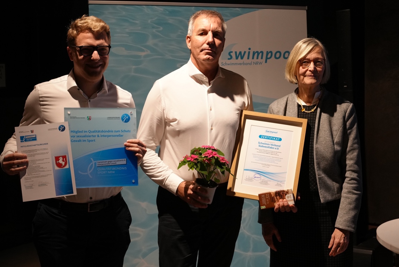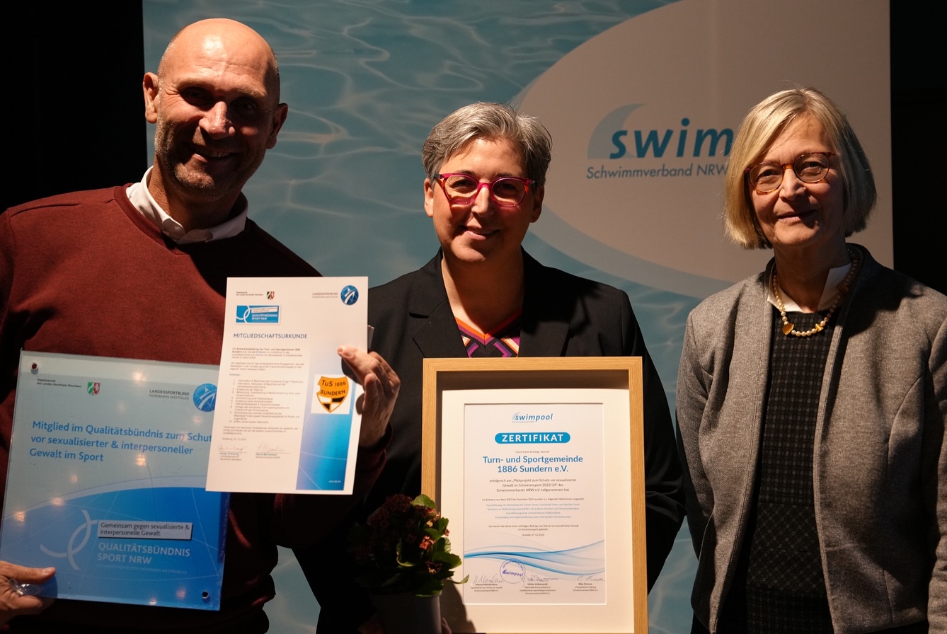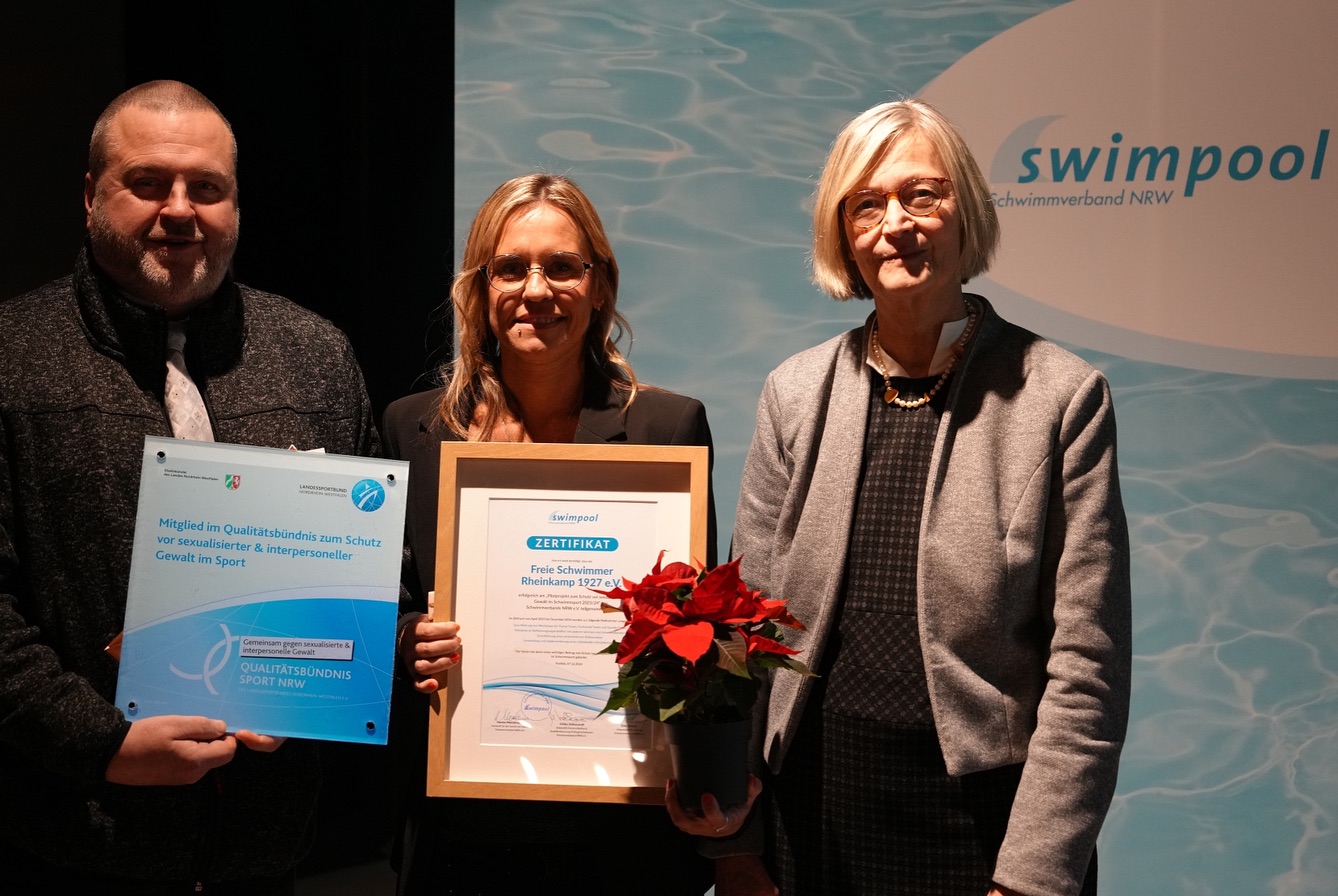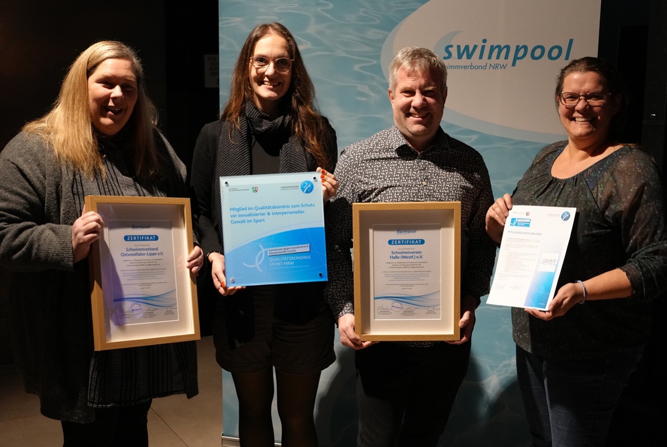 Die sieben schwimmsporttreibenden Vereine und vier Schwimmbezirke des Schwimmbezirke des Schwimmverbandes NRW wurden zeitgleich ins Qualitätsbündnis zum Schutz vor sexualisierter und interpersoneller Gewalt im Sport des Landessportbundes NRW aufgenommen. Mit ihrer erfolgreichen Teilnahme am Pilotprojekt erfüllten sie alle zehn Qualitätskriterien, wie z.B. den Aufbau eines lokalen Netzwerkes. ✅