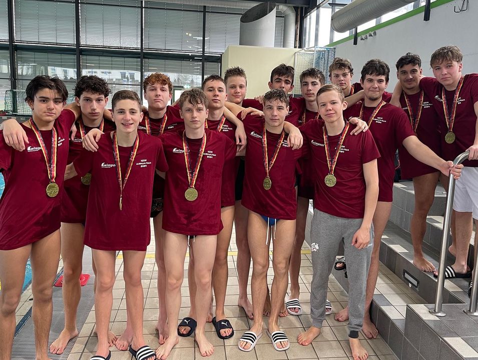 Für das Team aus dem Schwimmverband NRW war der Einstieg in das Turnier denkbar ungünstig: Direkt im ersten Spiel trafen sie auf die Spieler aus dem Osten und mussten sich mit 5:16 geschlagen geben. Knapp ging das zweite Spiel der Wasserballer aus NRW gegen die Mannschaft aus dem Süden mit 13:14 aus. Im letzten Spiel des Turniers sicherte sich das NRW-Team mit 13:7 die Bronzemedaille gegen die Landesgruppe Nord. 🥉