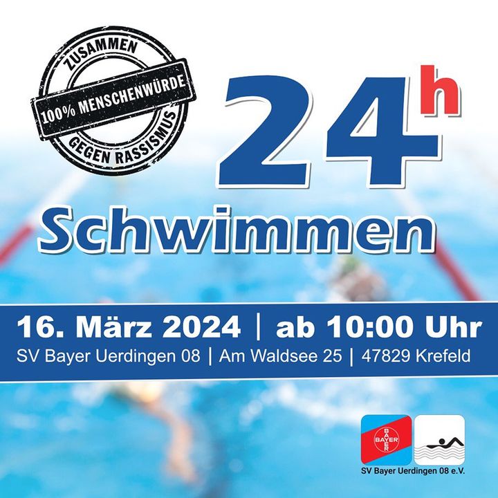 Am 16. und 17. März 2024 heißt es beim SV Bayer Uerdingen 08 e.V. möglichst viel Strecke zurücklegen: Dieses Jahr steht das 24-Stunden-Schwimmen unter dem Motto „Gemeinsam gegen Rassismus“! ️
