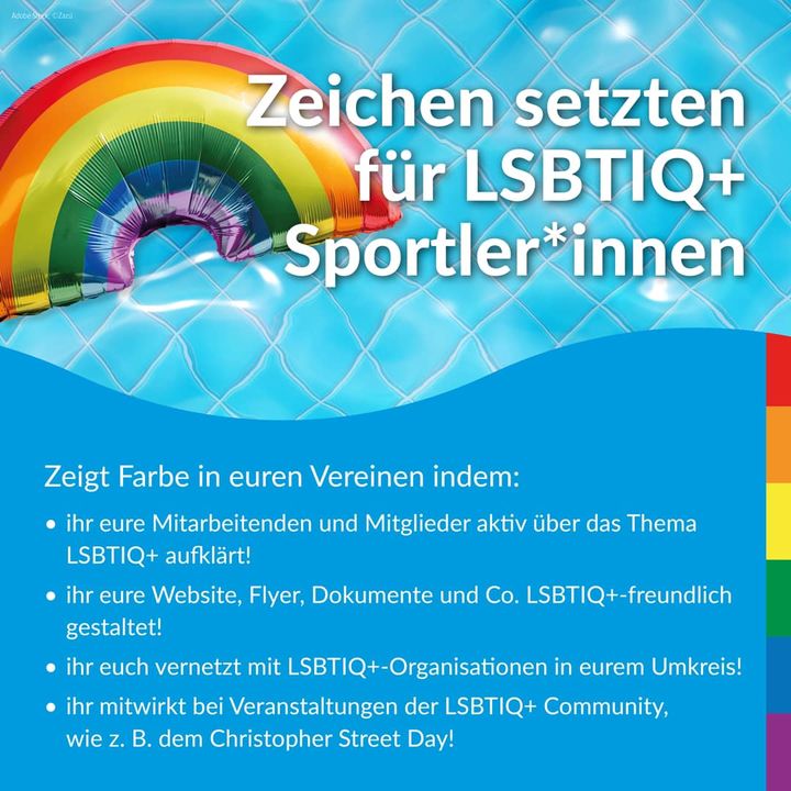 Macht sichtbar, dass ihr euch als Verein mit dem Thema beschäftigt und es euch wichtig ist, einen sicheren Raum für queere Menschen zu bieten! Informiert eure Mitglieder über das Thema! 👍🏼