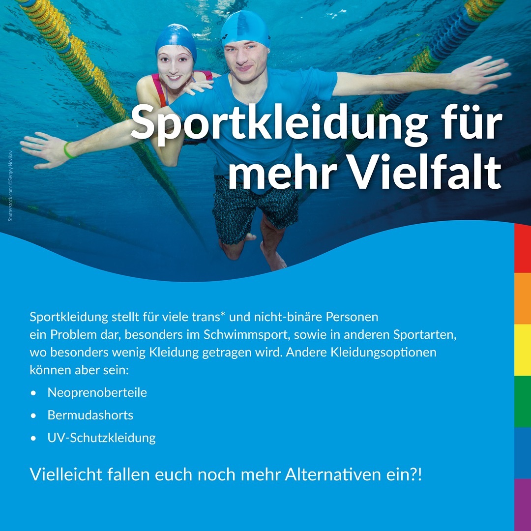 Sportkleidung stellt für viele trans* und nicht-binäre Personen ein Problem dar, besonders im Schwimmsport und anderen Sportarten, wo besonders wenig Kleidung getragen wird. 🏊🏾♀️🏊🏽🏊🏽♂️