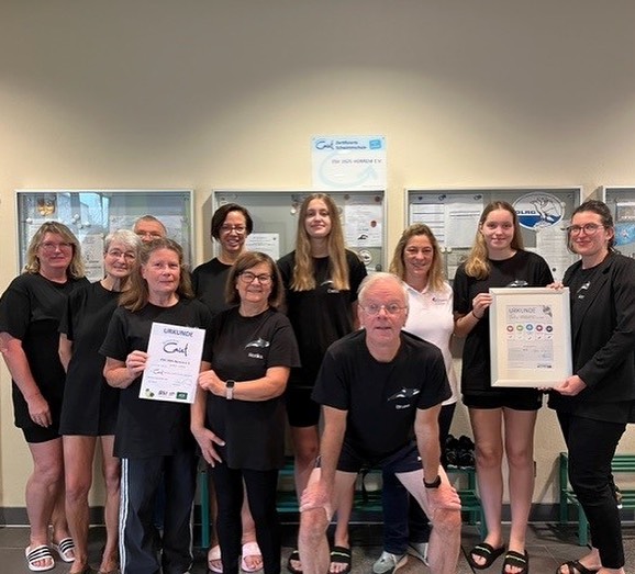 Mit dem SchwimmGut-Siegel stellt der Verein wieder einmal die gut-durchdachte und nachhaltige Anfängerschwimmausbildung unter Beweis. Mit der SchwimmAktiv-Zertifizierung wird darüber hinaus verdeutlicht, dass der Verein nicht nur im Bereich "Schwimmen Lernen", sondern u.a. auch in den Bereichen "Gesundheit", "Veranstaltungen", "Gesellschaft" und "Ausbildung" vorne mit dabei ist.
