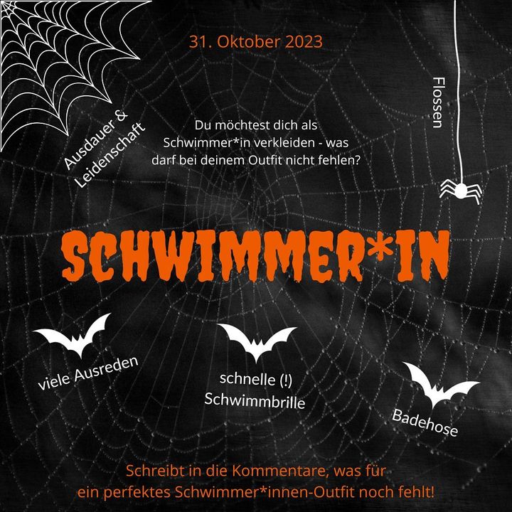 Du willst dich zu Halloween 🎃 als Schwimmer*in, als Wasserballer*in, als Synchronschwimmer*in oder als Wasserspringer*in verkleiden??!! Was darf bei deinem Outfit auf keinen Fall fehlen??!!