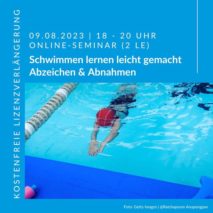 Das erste Online-Seminar zum Thema Schwimmabzeichen und Abnahmen ist kostenfrei und wird mit zwei Lerneinheiten für die Verlängerung der ZertifikateSchwimmlehrerassistent*in und Schwimmlehrer*in, sowie der C-Trainer*innen-Lizenzen im Breitensport des Schwimmverbandes NRW anerkannt. 📜