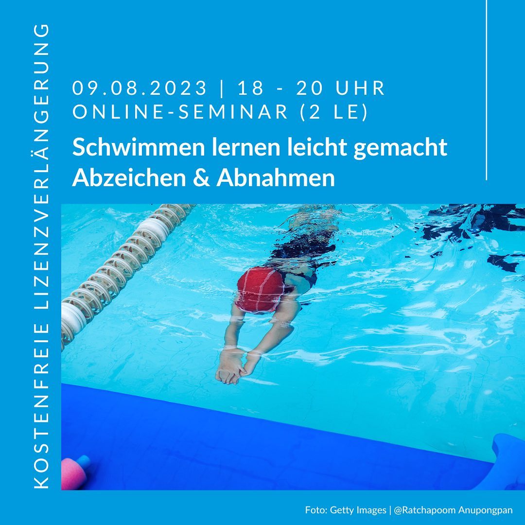 Das erste Online-Seminar zum Thema Schwimmabzeichen und Abnahmen ist kostenfrei und wird mit zwei Lerneinheiten für die Verlängerung der ZertifikateSchwimmlehrerassistent*in und Schwimmlehrer*in, sowie der C-Trainer*innen-Lizenzen im Breitensport des Schwimmverbandes NRW anerkannt.