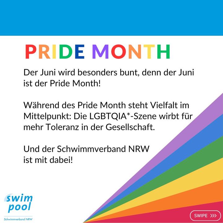 Im Juni steht Vielfalt im Mittelpunkt: Die LGBTQIA*-Community wirbt für mehr Toleranz in der Gesellschaft und der Schwimmverband ist mit dabei! ❤️🧡💛💚💙💜