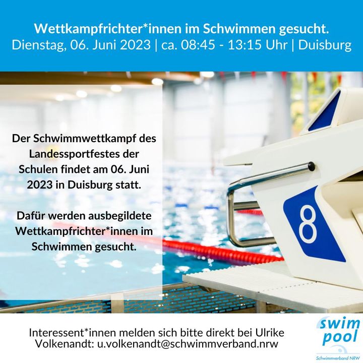 👀 Wenn wir dich neugierig gemacht haben und du die Zukunft des Schwimmsportes aktiv mitgestalten willst, richte deine aussagefähige Bewerbung in ausschließlich digitaler Form (PDF max. 10 MB) und unter Angabe der Gehaltsvorstellung und des frühestmöglichen Eintrittsdatums bis zum 20. Juni an bewerbungen@schwimmverband.nrw 📧