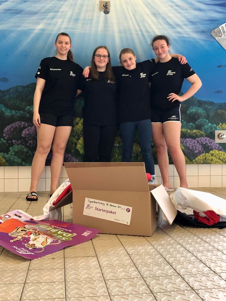 Das J-Team der SG Bochum-Ost durfte sich u.a. über Trinkflaschen und Rucksäcke freuen – Goodies, die im neuen Starterpaket der Sportjugend NRW Landessportbund Nordrhein-Westfalen e.V. zu finden sind und die sehr gut ankommen. In jedem Verein kann ein J-Team gegründet werden: Alle Informationen hierzu sind unter https://www.schwimmverband.nrw/de/schwimmjugend/projekte/j-teams/ zu finden.