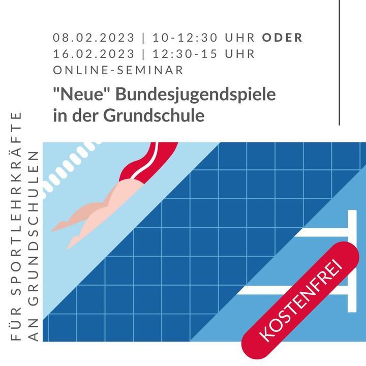 Gemeinsam mit den Leichtathletik-Verbänden in NRW führt der Schwimmverband NRW am 🗓️ 08. & 16.02.2023 zwei kostenfreie Infowebinare 🧑🏽💻 für Sportlehrkräfte an Grundschulen durch. Thema sind die "neuen" Bundesjugendspiele.