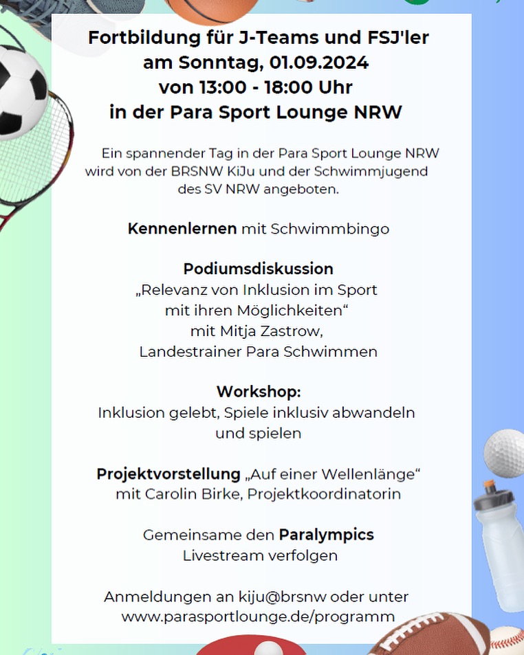 🖊️ J-Teams und alle Interessierten können sich gerne vorab anmelden: kiju@brsnw.de oder unter https://www.parasportlounge.de/programm 🔝 Link in unserer Bio 👀
