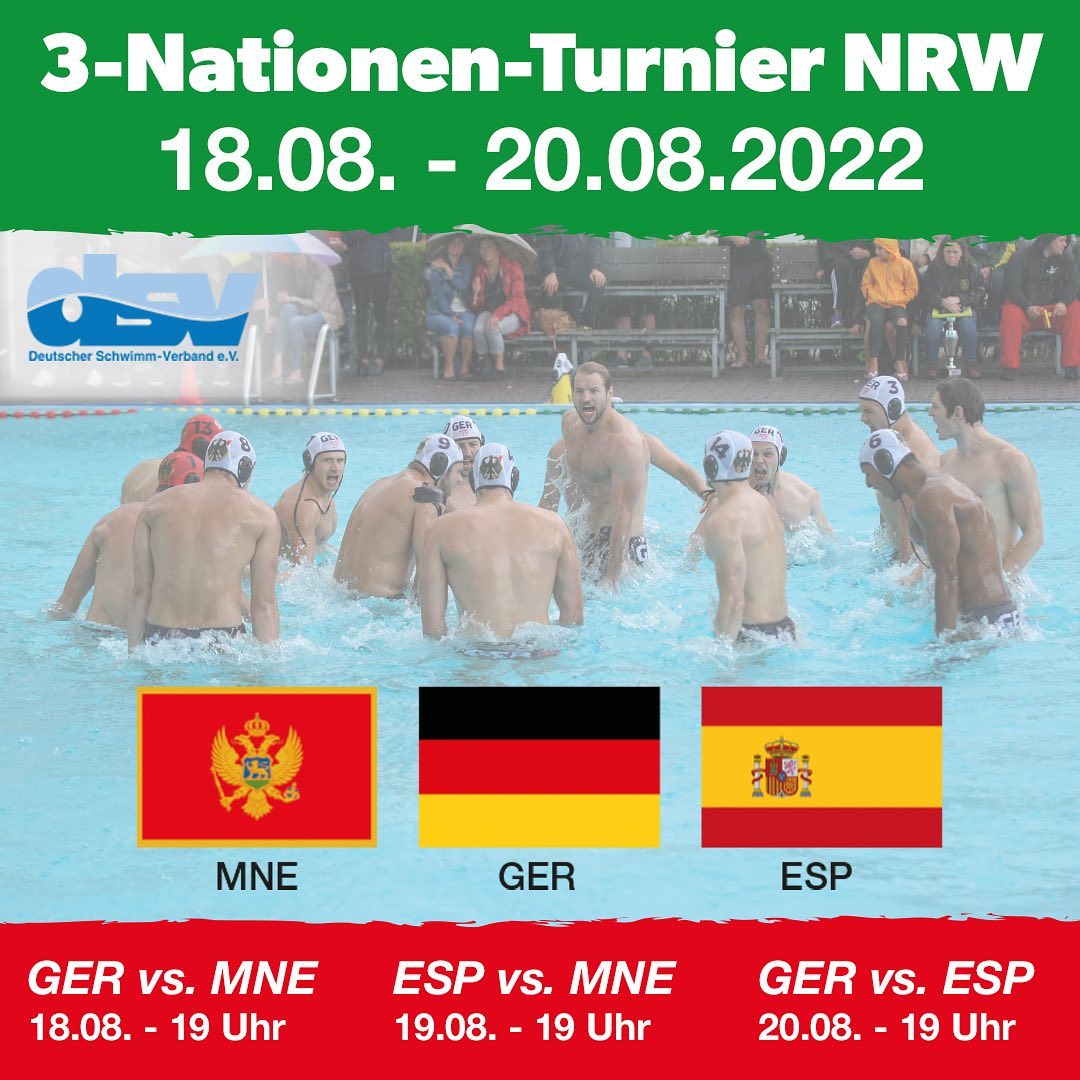 Am Donnerstag, dem 18.08.2022 findet beim SV Krefeld 72 e.V. das erste Spiel des 3-Nationen-Turniers im Wasserball statt. Deutschland trifft ab 19:00 Uhr auf Montenegro. Sei dabei!
