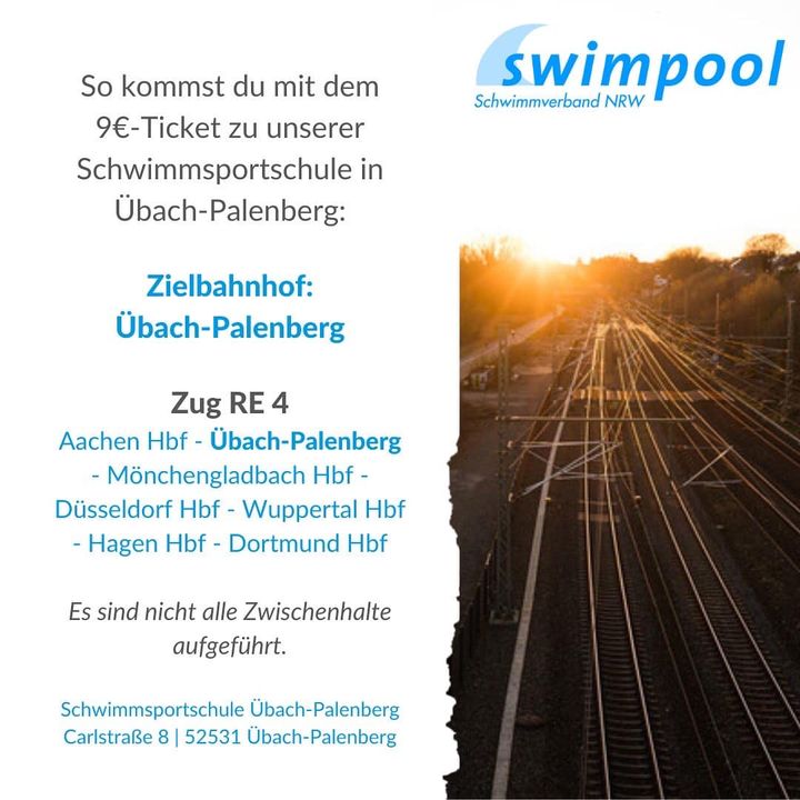 Du hast in den nächsten Monaten einen 🤓 Lehrgang in unserer Schwimmsportschule in Übach-Palenberg oder im Sport- & Tagungszentrum Hachen und möchtest mit dem ÖPNV anreisen? Kein Problem‼️