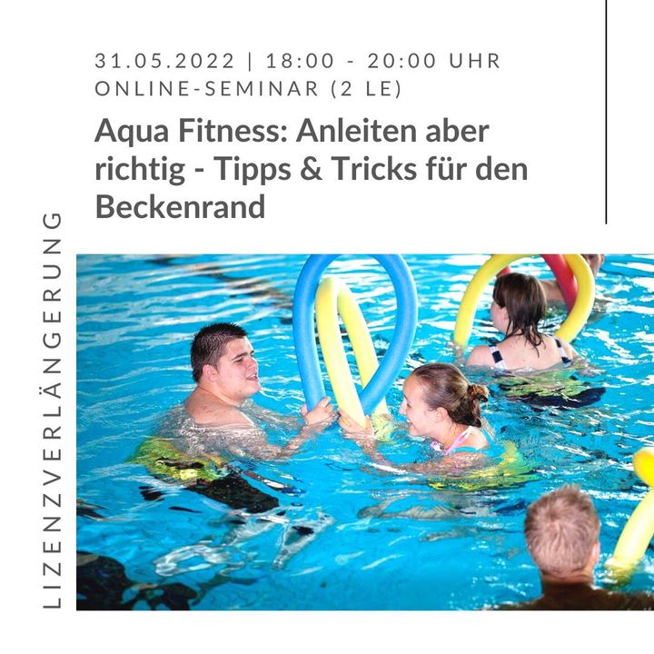 31.05.2022 | 18:00-20:00 Uhr | Online-Seminar (2 LE): Auqa Fitness: Anleiten aber richtig - Tipps & Tricks für den Beckenrand 💪🏾