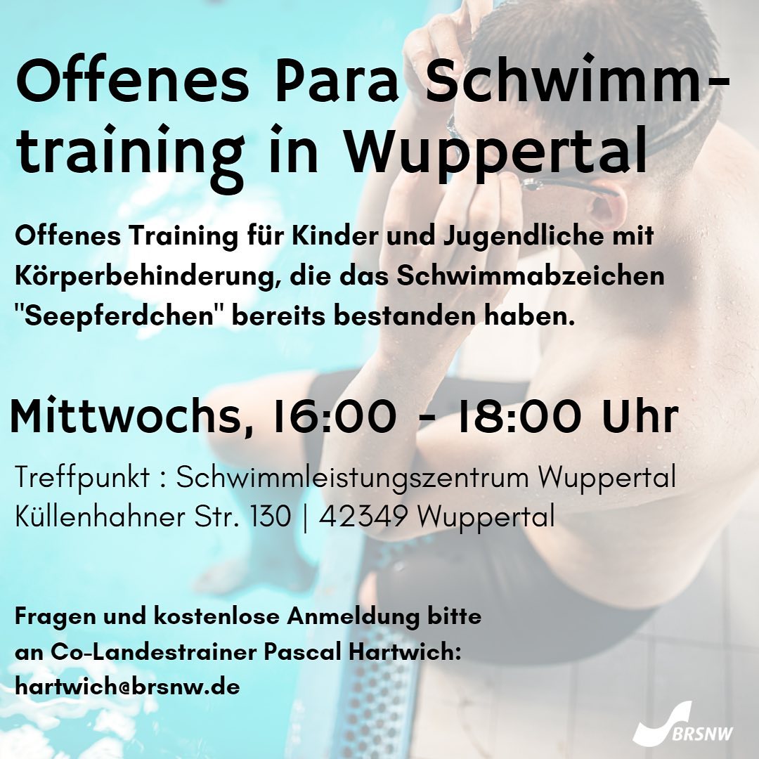 Der Behinderten- und Rehabilitationssportverband NRW e.V. bietet jeden Mittwoch von 16-18 Uhr ein offenes Schwimmtraining für Kinder & Jugendliche ️️ mit Körperbehinderung an, die das Seepferdchen bereits erfolgreich absolviert haben.