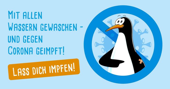 Unser Pinguin Ole ist nicht nur mit allen Wassern gewaschen, sondern natürlich auch gegen Corona 🦠 geimpft ️