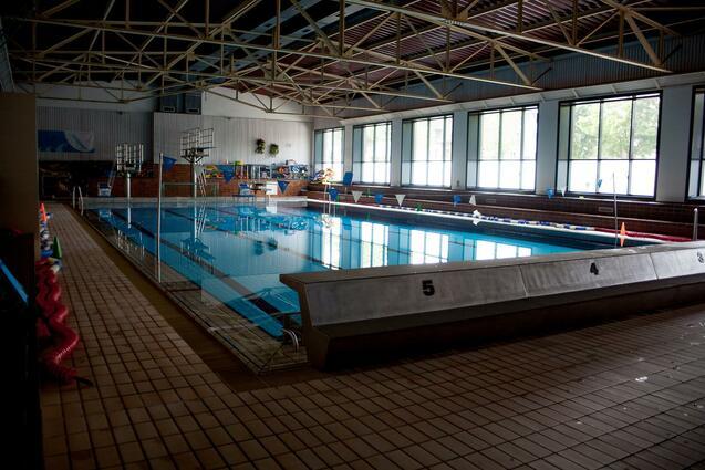 Unsere Schwimmhalle bietet 5 Bahnen á 25m mit einer Wassertiefe von 2m - 3,8m. Jede Bahn verfügt über einen Startblock auf der einen Seite und einer durchgängigen Startbrücke auf der anderen Seite. Zudem stehen drei Wettkampfsprungbretter (1m, 2m und 3m) und zwei Wasserballtore zur Verfügung.