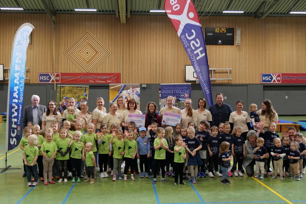 Am 1. März 2026 durften sich gleich zwei SportKitas des Hammer SportClub 2008 e.V. über eine besondere Ehrung freuen: Die Einrichtungen „Ahsestrolche“ und „Grashüpfer“ erhielten das Qualitätssiegel „SchwimmKita“ des Schwimmverbandes NRW. Rund 130 Gäste – Kinder, Familien sowie Mitarbeitende des Vereins – feierten den gemeinsamen Erfolg.