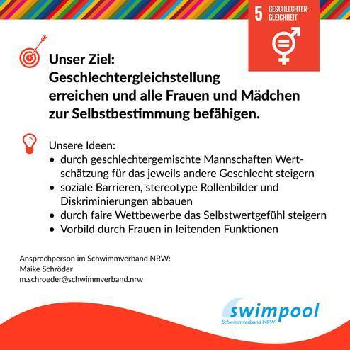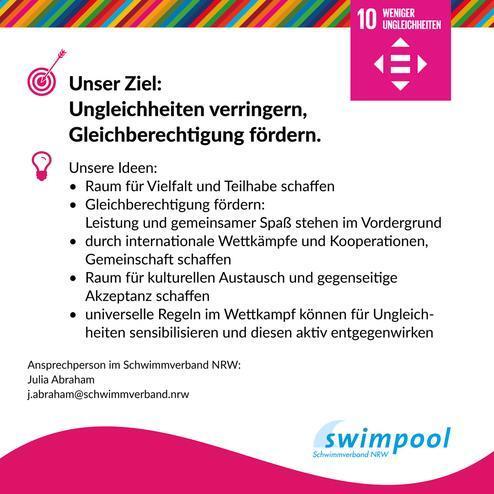 "Weniger Ungleichheiten" lautet das 10. der UN-Nachhaltigkeitsziele. Der Schwimmverband NRW möchte mit Hilfe der Vereine Ungleichheiten verringern und Gleichberechtigung fördern. Wie kann das aussehen?