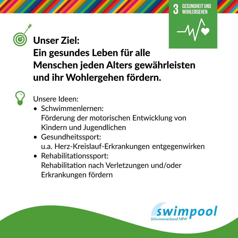 Wusstet ihr, dass ihr in und mit eurem Sportverein vermutlich schon mehrere Nachhaltigkeitsziele der Vereinten Nationen erfüllt? Das Nachhaltigkeitsziel 3 heißt "Gesundheit und Wohlergehen". Die Ziele, die in diesem Feld erreicht werden sollen, sind die Gewährleistung eines gesunden Lebens für alle Menschen jeden Alters, sowie die Förderung des Wohlergehens.