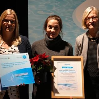 Alle Pilotvereine und Schwimmbezirke, welche die Anforderungen des Pilotprojektes erfüllt haben, werden vor Ort vom Schwimmverband NRW ausgezeichnet. Außerdem versuchen wir, dass alle Pilotvereine und Schwimmbezirke, die darüber hinaus die Anforderungen des Qualitätsbündnisses zum Schutz vor sexualisierter und interpersoneller Gewalt im Sport erfüllt haben, vor Ort vom Landessportbund NRW ausgezeichnet und in das Qualitätsbündnis aufgenommen werden.