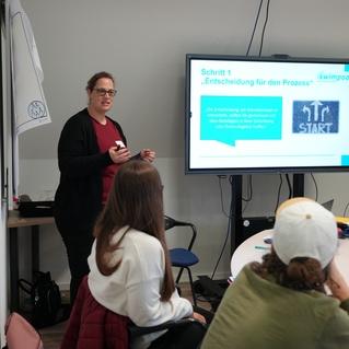 Steffi Korell erarbeitete mit den Teilnehmer*innen gemeinsam, wie Kinder und Jugendliche besser bei der Erstellung einer Risikoanalyse und eines Schutzkonzeptes eingebunden werden können. In den Workshops der beiden Referentinnen von inmedio – Lea Esser und Mascha Wycick – diskutierten die Teilnehmer*innen darüber, wie im Verein die Informations- und Sensibilisierungsarbeit aussehen und ein Beschwerde- und Meldesystem implementiert werden kann. Hinrich Doege vom Landesschwimmverband Schleswig-Holstein nahm die rechtlichen Aspekte in der Präventions- und Interventionsarbeit unter die Lupe.